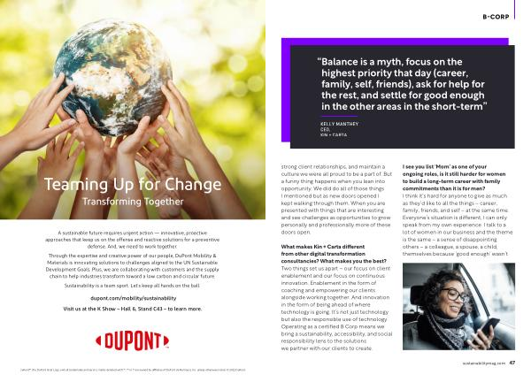 Through the expertise and creative power of our people , DuPont Mobility & Materials is innovating solutions to challenges aligned to the UN Sustainable Development Goals . Plus , we are collaborating with customers and the supply chain to help industries transform toward a low carbon and circular future .