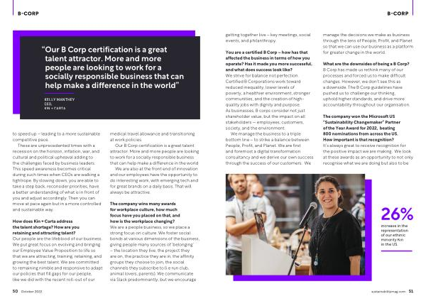 “ Our B Corp certification is a great talent attractor . More and more people are looking to work for a socially responsible business that can help make a difference in the world ”