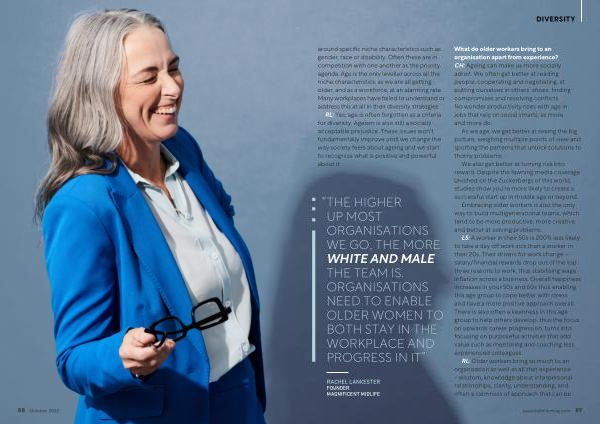 RL : Yes , age is often forgotten as a criteria for diversity . Ageism is also still a socially acceptable prejudice . These issues won ' t fundamentally improve until we change the way society feels about ageing and we start to recognise what is positive and powerful about it .