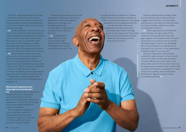 Trumpet the successes of your older employees , tweak your recruitment algorithms to remove all ageism prejudices , and make your workplace physically comfortable for older bodies ( younger workers will love this too ).