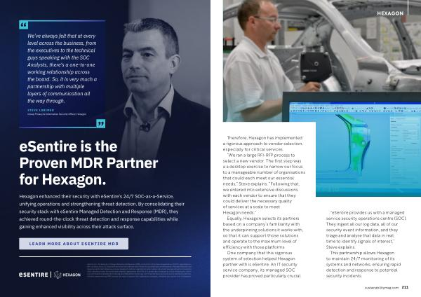 This partnership allows Hexagon to maintain 24 / 7 monitoring of its systems and networks , ensuring rapid detection and response to potential security incidents . sustainabilitymag . com 211