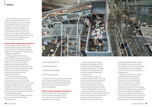 It also addresses the critical issue of resource depletion, recognising that society’ s unsustainable consumption patterns are placing unprecedented pressure on natural resources. Through innovative methods to repurpose waste materials, Veolia has created numerous solutions that power its own facilities, generate sustainable products, and support customers across water, waste and energy sectors.