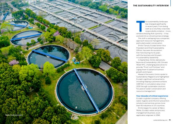 Ahead of the event, Emilio spoke to Sustainability Magazine and highlighted Ecolab’ s significant achievements, including helping customers achieve US $ 9.1bn in cumulative value since 2019 through sustainable solutions focused on water conservation and resource management.