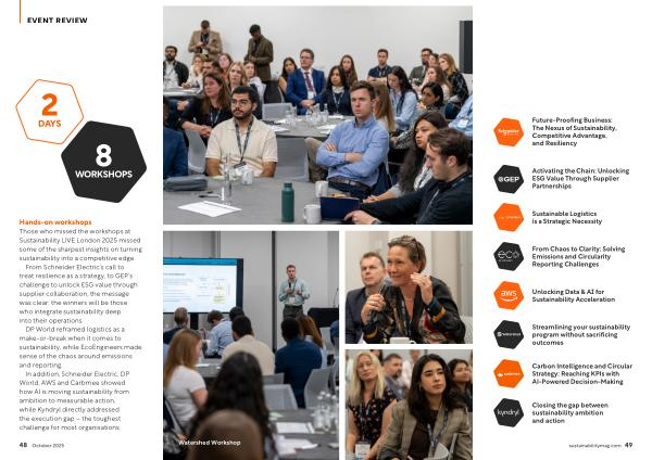 Hands-on workshops Those who missed the workshops at Sustainability LIVE London 2025 missed some of the sharpest insights on turning sustainability into a competitive edge. From Schneider Electric’ s call to treat resilience as a strategy, to GEP’ s challenge to unlock ESG value through supplier collaboration, the message was clear: the winners will be those who integrate sustainability deep into their operations.