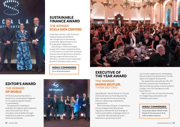 Ingrid Beutler, Senior Partner for Europe and Governance at Think Beyond, has been recognised for her pioneering efforts in advancing sustainability in global sport.