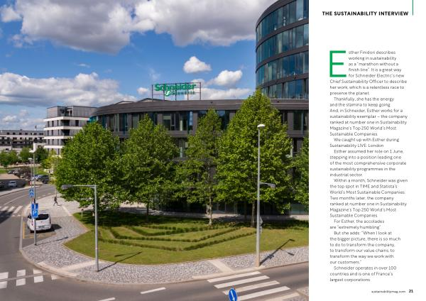 Thankfully, she has the energy and the stamina to keep going. And, in Schneider, Esther works for a sustainability exemplar – the company ranked at number one in Sustainability Magazine’ s Top 250 World’ s Most Sustainable Companies.