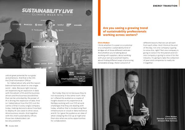 So I talked about why and the reason behind that boils down to one single word – data. Because right now we are experiencing an explosion in data with the advent of AI and the business drivers and the business possibilities that can be unlocked by the power of AI is driving this explosion of data. And so I talked about how the CIO is at the centre of that in every single company today, making decisions about how best to deploy AI use cases to drive value, drive business results. And together with the chief sustainability officer, those two stakeholders can be very powerful.