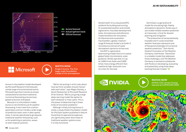Nvidia’ s Earth-2 is a cloud and GPU platform for building and running AI-accelerated weather and climate digital twins. It bundles development tools, microservices and reference implementations for simulation, AI inference and visualisation. FourCastNet, a global, mediumrange AI forecast model is an Earth-2 microservice and can emulate atmospheric dynamics at low cost.