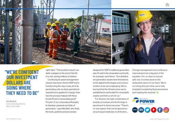 Continuing its asset management mission has been vital for NSP and is transforming the way it uses all of its generating units as deep operational experience is applied to change . How has the process helped with Nova Scotia Power ’ s renewables goal ? “ It ’ s part of our corporate philosophy to develop a greener portfolio of generation ,” says MacNeil , who finds the tools , systems and processes
