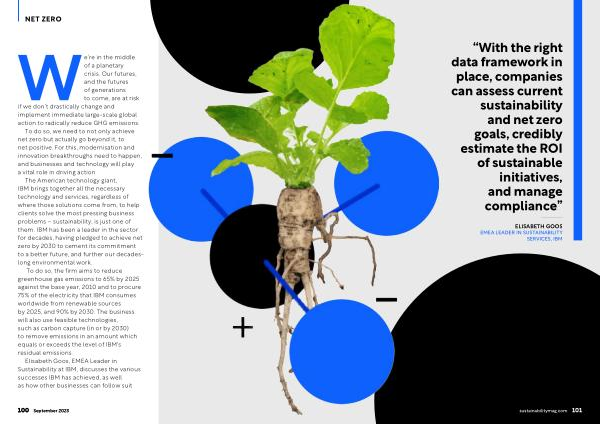 “ With the right data framework in place , companies can assess current sustainability and net zero goals , credibly estimate the ROI of sustainable initiatives , and manage compliance ”