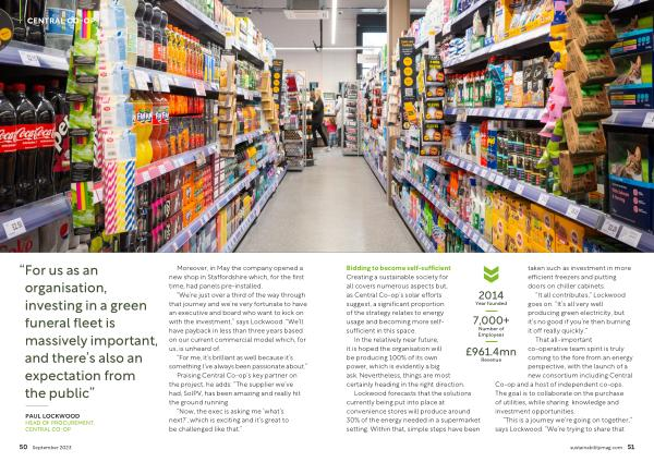 Bidding to become self-sufficient Creating a sustainable society for all covers numerous aspects but , as Central Co-op ’ s solar efforts suggest , a significant proportion of the strategy relates to energy usage and becoming more selfsufficient in this space .