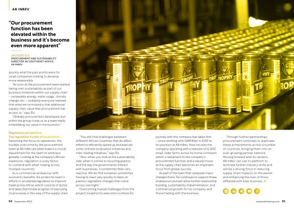 JACQUES ELS PROCUREMENT AND SUSTAINABILITY DIRECTOR : BU SOUTHEAST AFRICA , AB INBEV