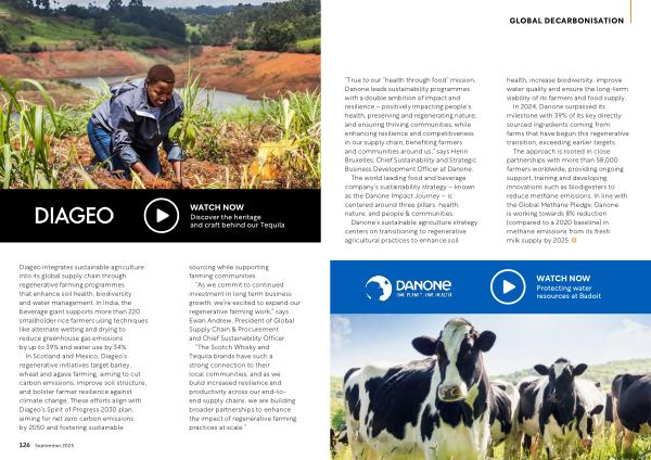 Diageo integrates sustainable agriculture into its global supply chain through regenerative farming programmes that enhance soil health, biodiversity and water management. In India, the beverage giant supports more than 220 smallholder rice farmers using techniques like alternate wetting and drying to reduce greenhouse gas emissions by up to 39 % and water use by 34 %.