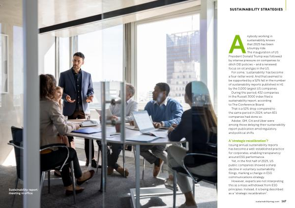 A‘ strategic recalibration’? Issuing annual sustainability reports has become a well-established practice for corporates, enabling transparency around ESG performance.