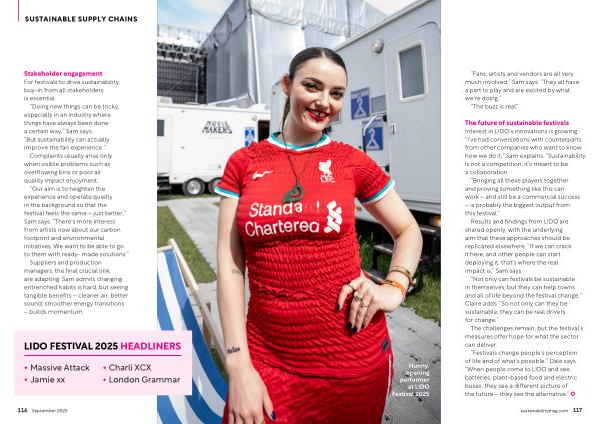 “ Doing new things can be tricky, especially in an industry where things have always been done a certain way,” Sam says.“ But sustainability can actually improve the fan experience.”