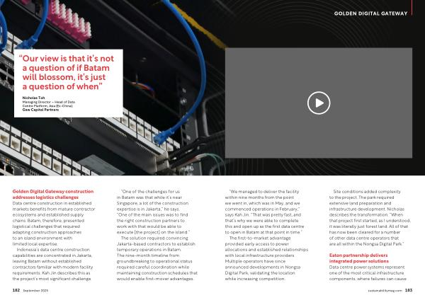 Golden Digital Gateway construction addresses logistics challenges Data centre construction in established markets benefits from mature contractor ecosystems and established supply chains. Batam, therefore, presented logistical challenges that required adapting construction approaches to an island environment with limited local expertise.
