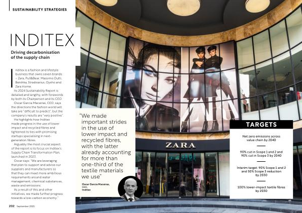 Inditex is a fashion and lifestyle business that owns seven brands – Zara, Pull & Bear, Massimo Dutti, Bershka, Stradivarius, Oysho and Zara Home. Its 2024 Sustainability Report is detailed and lengthy, with forewords by both its Chairperson and its CEO.