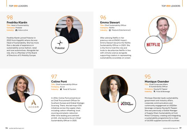 In 2016, Coline Pont joined Accor as Chief Procurement Officer for Southern Europe and Global Strategic Sourcing. There, she led major ESG initiatives across the supply chain, including carbon offsetting, local sourcing and plastic reduction. After time leading procurement at AXA, she became Accor’ s Chief Sustainability Officer in 2025.