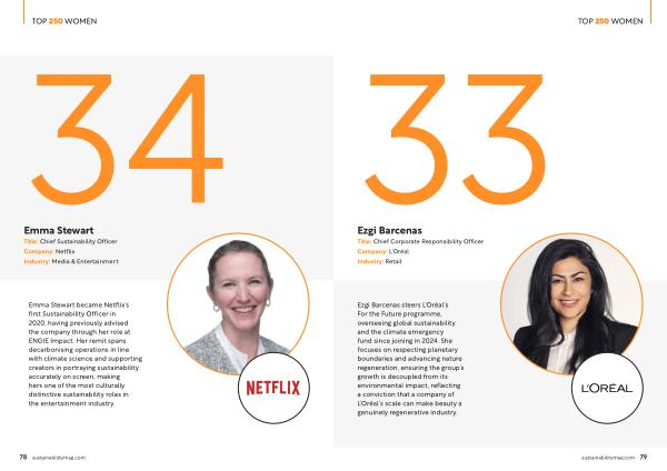 Ezgi Barcenas steers L’ Oréal’ s For the Future programme, overseeing global sustainability and the climate emergency fund since joining in 2024. She focuses on respecting planetary boundaries and advancing nature regeneration, ensuring the group’ s growth is decoupled from its environmental impact, reflecting a conviction that a company of L’ Oréal’ s scale can make beauty a genuinely regenerative industry. sustainabilitymag. com 79