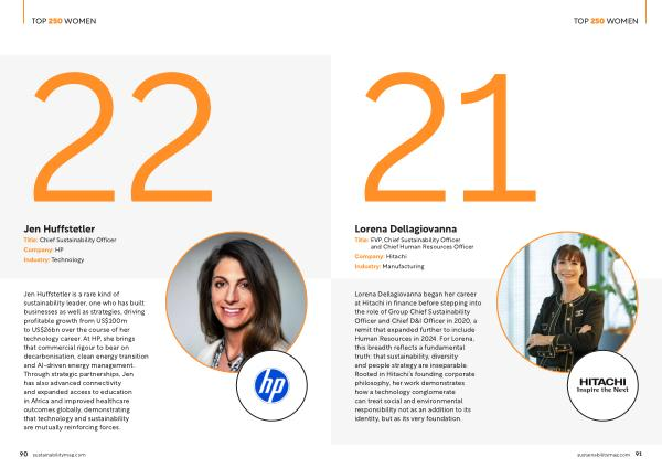 Jen Huffstetler is a rare kind of sustainability leader, one who has built businesses as well as strategies, driving profitable growth from US $ 100m to US $ 26bn over the course of her technology career. At HP, she brings that commercial rigour to bear on decarbonisation, clean energy transition and AI-driven energy management. Through strategic partnerships, Jen has also advanced connectivity and expanded access to education in Africa and improved healthcare outcomes globally, demonstrating that technology and sustainability are mutually reinforcing forces.