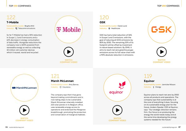 GSK has had a total reduction of 36 % in Scope 1 and 2 emissions, with the goal of reducing all GHG emissions by 80 % by 2030. The remaining 20 % of its footprint will be offset by investment in nature based solutions. By 2045, it aims to reach net zero greenhouse gas emissions across its full value chain with a 90 % absolute reduction in emissions. WATCH COMPANY VIDEO